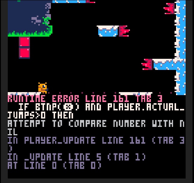 he whe me quede en el pedazo de avajo del doble salto al fallar un salto y no tengo doble salto me toco reiniciar el juego